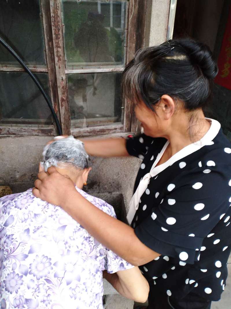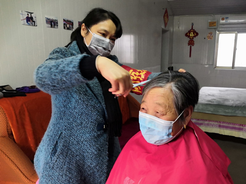 “沒有想到我在家里,還有志愿者上門,為我理發(fā)、洗頭和剪指甲,像姑娘一般地貼心,讓我特別感動。”淮海城西居委會振興小區(qū)的居民、80多歲的陳福梅說。