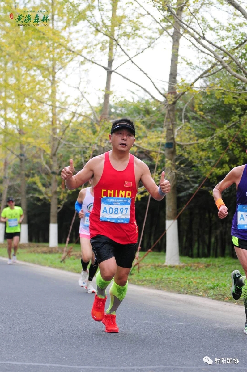 生命在奔跑中堅(jiān)韌。曾經(jīng)以為跑馬拉松是一件遙不可及的事,想想要跑這么長(zhǎng)的距離讓人望而卻步,為此我要感謝臨海跑協(xié)的陳昌和老師,王志蘭隊(duì)長(zhǎng),美女陳燕 ,在他們的引領(lǐng)下讓我對(duì)馬拉松有了初步的了解和認(rèn)識(shí),在他們的鼓勵(lì)下讓我從開(kāi)始慢跑10圈,上氣不接下氣,渾身出虛汗到今天順利完成了3個(gè)半程馬拉松的比賽。從2019年大豐馬拉松98分鐘到丹陽(yáng)馬拉松94分41秒再到本次黃海森林馬拉松94分19秒的成績(jī) ,一次次PB后的欣喜若狂其背后付出的辛酸只有自己和鞋知道。回想跑步的15個(gè)月里,中間經(jīng)歷了太多,但有付出就有回報(bào),15個(gè)月我的體重從168斤減到了145斤,血壓下降至120,人有精神也有活力了,從開(kāi)始的跑步減肥到今天的熱愛(ài),從熱愛(ài)到習(xí)慣,這一路的心路歷程都離不開(kāi)王隊(duì)他們的鼓勵(lì)和陪伴,在王隊(duì)的推薦下我又成為射陽(yáng)跑協(xié)的一名成員,讓我見(jiàn)識(shí)了更多大神的風(fēng)采,群里不斷有跑友分享跑步經(jīng)驗(yàn),比賽動(dòng)態(tài),各種正能量的話題。我從中獲益匪淺,感謝他們讓我不斷提升,更感謝射陽(yáng)跑協(xié)和淮農(nóng)跑協(xié)的各位領(lǐng)導(dǎo)為我們提供平臺(tái)和支持。讓我更加堅(jiān)定了一直跑到老的信念,我會(huì)把這個(gè)信念一直堅(jiān)持到老,并傳遞給我的家人、朋友、同事。只有擁有健康的身體,才能擁有健康的靈魂。
