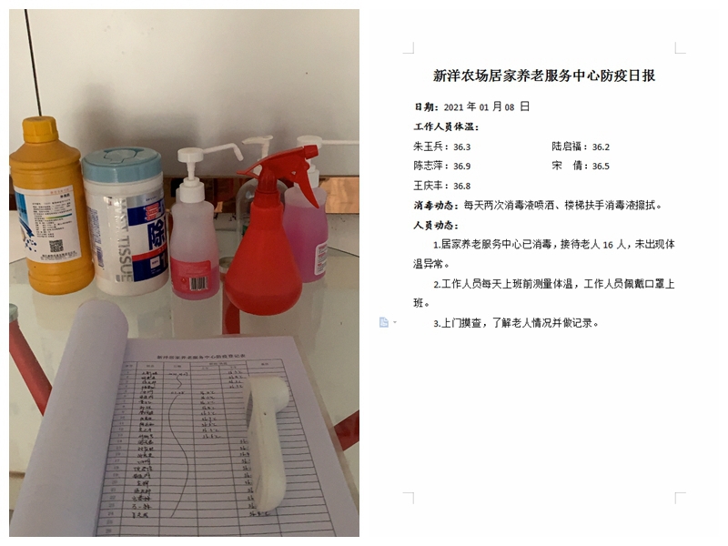 加強(qiáng)日常消毒和體溫監(jiān)測(cè)工作。中心全面加強(qiáng)衛(wèi)生管理工作,嚴(yán)格執(zhí)行消毒制度,保持中心設(shè)施通風(fēng),切實(shí)清除引發(fā)疫情的各項(xiàng)隱患。做好老年人體溫監(jiān)測(cè)和服務(wù)巡查,發(fā)現(xiàn)老年人和工作人員有感染癥狀的,及時(shí)送診,做好中心內(nèi)隔離消毒工作。