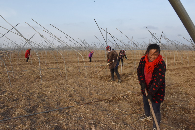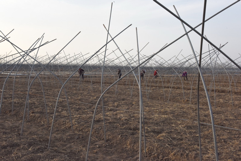 大面積連片在淮海進行的西瓜種植,不僅讓懷揣技術(shù)、經(jīng)驗、資金和市場的淅江瓜農(nóng)借助農(nóng)場小城鎮(zhèn)的集聚效應(yīng),借助充足的勞動力獲得增收的紅利,同時西瓜地大棚搭建及今后棚內(nèi)的各種管理措施,可以較好地帶動農(nóng)場的職工居民和周邊農(nóng)村的群眾,借西瓜種植基地的繁育種植和市場銷售,而實現(xiàn)他們在“家門口”打工創(chuàng)收的夢想,有力地帶動了廣大職工居民和農(nóng)村群眾借農(nóng)機和勞務(wù)來實現(xiàn)增收。圖為職工群眾在大棚基地里進行勞作時的鏡頭。