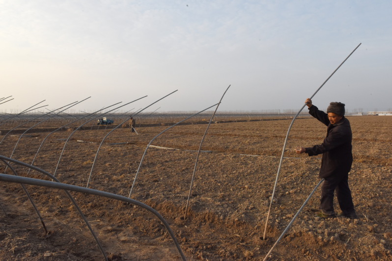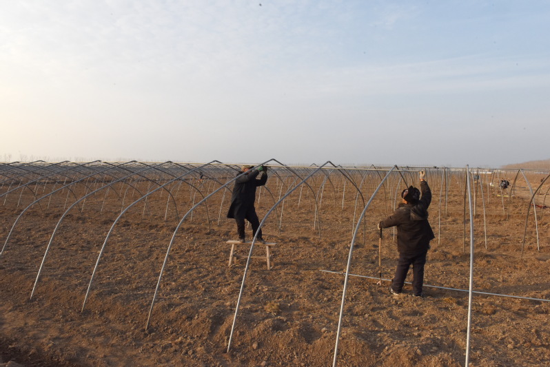 1月20日,筆者在淮海農(nóng)場五分場社區(qū)3000多畝西瓜大棚種植基地里看到,眾多的農(nóng)場職工居民和周邊農(nóng)村的群眾,散落在西瓜種植基地內(nèi),正在熱火朝天地進行西瓜大棚種植的棚架搭建、土地平整、機械操作、鋪膜蓋棚等各種勞務(wù)用工工作,這成為冬日里一道繁忙的風(fēng)景線。