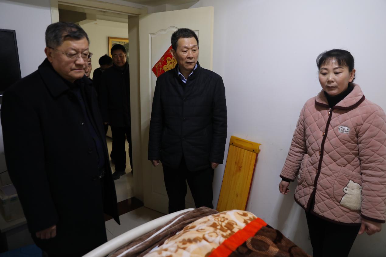 在困難職工喬艷家中,姚準明詢問其家人目前生活情況和存在的困難。當?shù)弥獑唐G女兒還在上高中,他親切叮囑要保證孩子的學習教育和健康成長。
