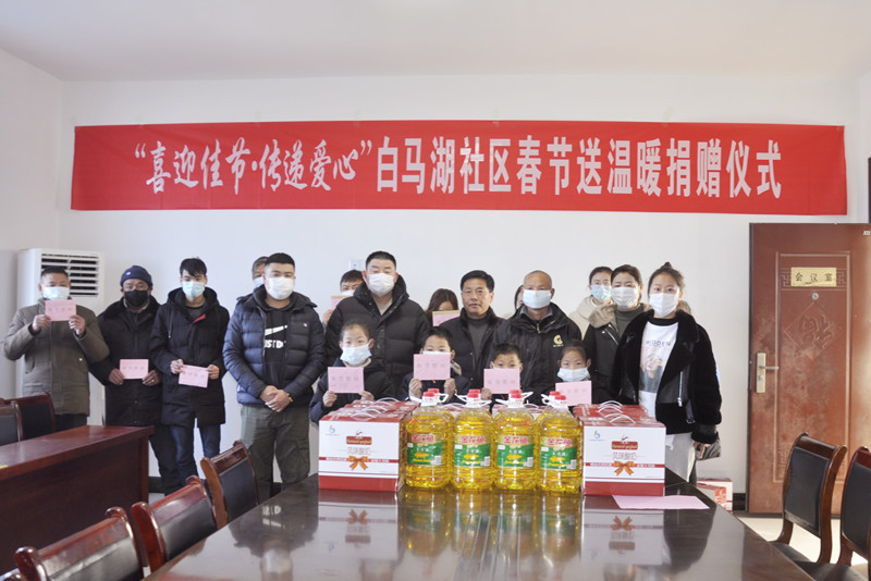 2月8日上午,江蘇皇崗集團有限公司副總經(jīng)理胡萬紅帶領(lǐng)有關(guān)人員特意來到白馬湖農(nóng)場裕源居委會,為韓春輝、韓得紅、王建林等十戶困難家庭送上了牛奶、食用油等慰問品以及各1千元的慰問金,并提前祝他們過一個溫馨祥和的春節(jié)。