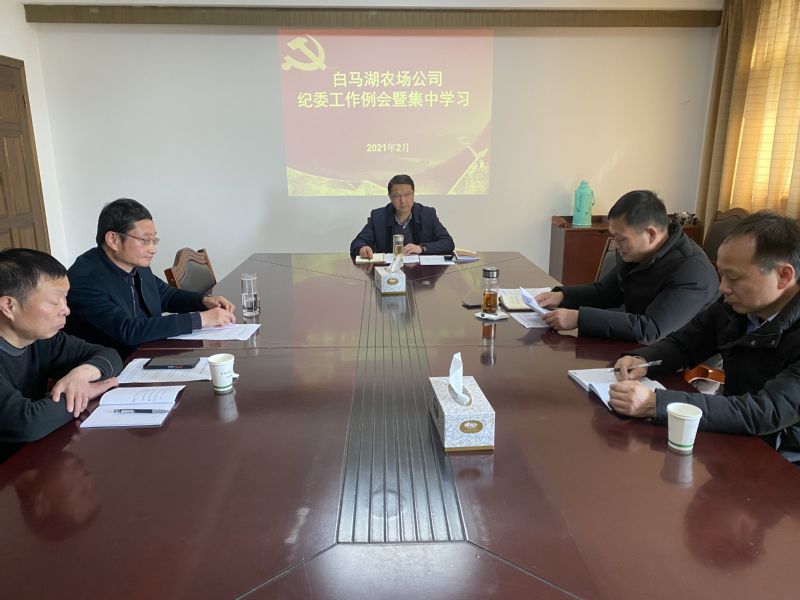 2月20日下午,白馬湖農場有限公司紀委召開年度第二次集中學習會,及時跟進學習習近平總書記最新講話和省紀委六次全會等的精神,研究部署當前工作。紀委書記韓躍武主持會議,全體紀委委員參加會議。