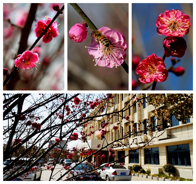 徜徉在新洋的金龍灣公園、機關大樓旁的后花園、中心河畔,但見那一朵朵、一株株、一片片的紅梅競相開放,把春天打扮得分外妖嬈,空氣中飄蕩著醉人的清香。