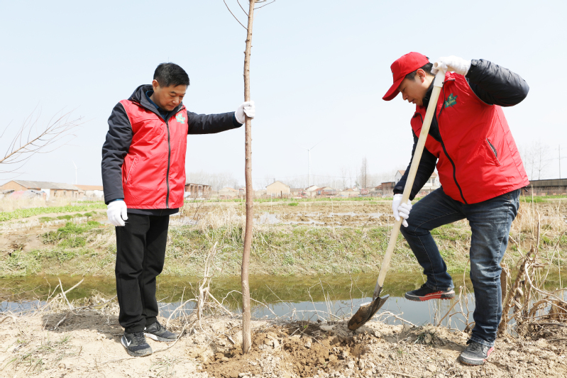 在植樹活動現(xiàn)場,領導班子成員充分發(fā)揚“老黃牛”精神,率先拿起鐵鍬埋頭苦干,正苗、培土、踩實……,每道工序都做得認真細致。