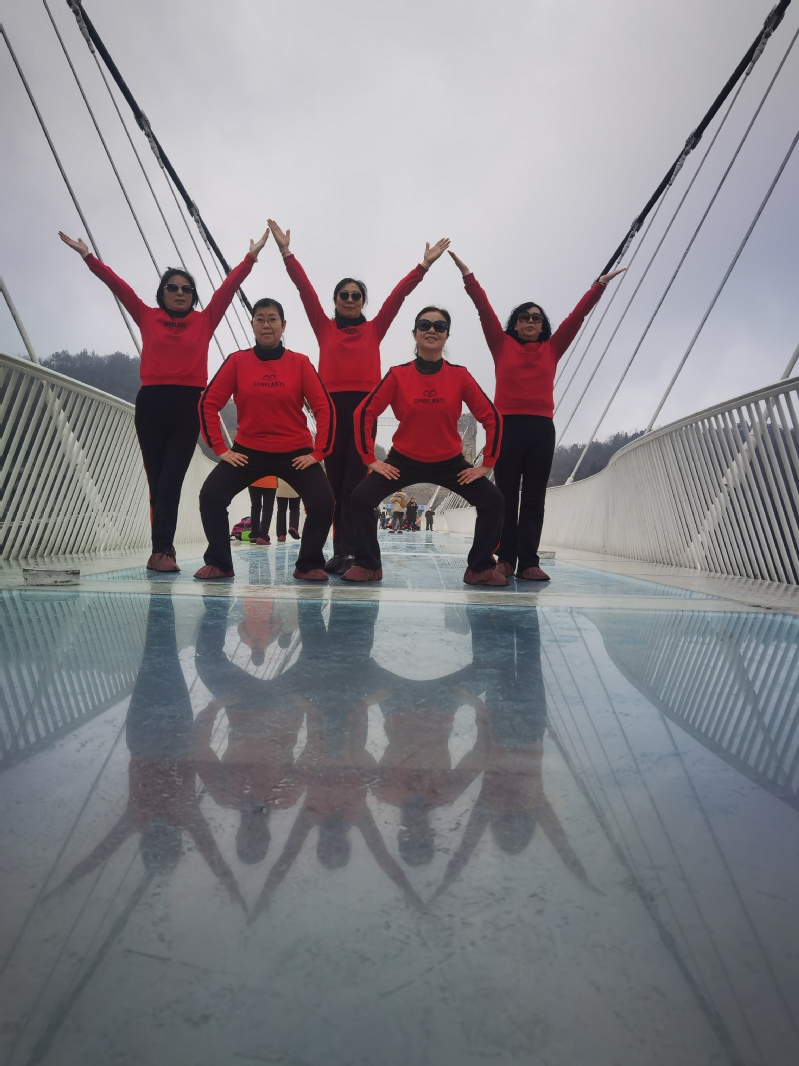 3月9日,三八國際婦女節(jié)過后第一天,此時也正是廣大婦女朋友們展示才藝的大好時節(jié)。我們借助網(wǎng)絡(luò)平臺注意到,在張家界大峽谷玻璃橋上,來自淮海農(nóng)場的一群身穿紅色運動服的婦女們,利用渾身上下展示出來的氣質(zhì),借助祖國大好的自然風(fēng)光平臺,通過編排整齊劃一的舞姿與自然風(fēng)光相結(jié)合的方式,既讓大家展示出了青春年華的亮麗色彩,也保留住了景區(qū)的旅游風(fēng)光。這些有著特定含義的照片和短視頻借助抖音、朋友圈等平臺,立刻展示在農(nóng)場人的手機中,贏得了社會各界的紛紛點贊和留言。