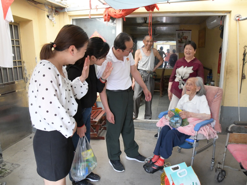 在端午節來臨之際,為讓百歲老人過上一個快樂詳和的傳統佳節,6月11日下午,淮海農場有限公司工會與社區民政負責人一起,帶著粽子、大米、葵花籽油等生活用品,分別慰問了今年已有102歲的張瑞瑞和邱維珍老人,并向她們致以節日的問候。