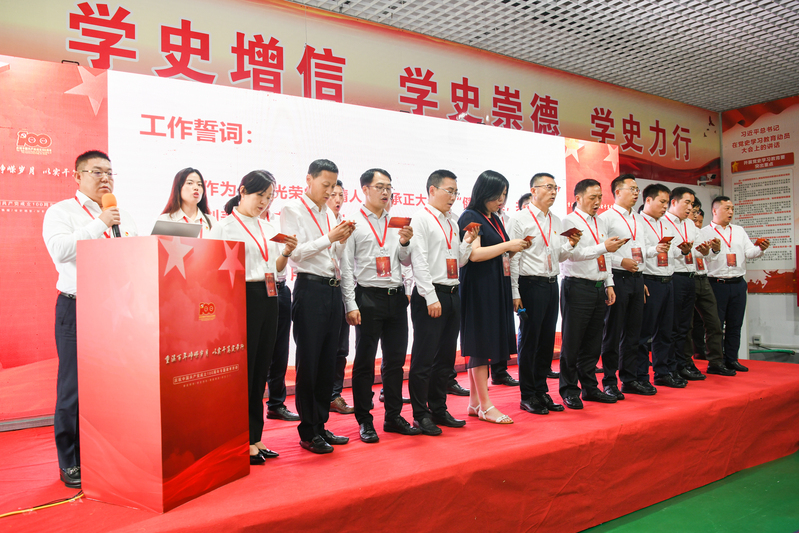 會(huì)上,九名優(yōu)秀黨員代表分享了學(xué)黨史、感黨恩、跟黨走的感悟,紛紛表示將以共產(chǎn)黨員的先進(jìn)性指導(dǎo)工作,啟發(fā)工作思路,取得良好業(yè)績(jī)。在姜國(guó)勇的帶領(lǐng)下,與會(huì)人員鄭重進(jìn)行工作宣誓,承諾用智慧和汗水創(chuàng)造價(jià)值,為實(shí)現(xiàn)百年天晴而不懈奮斗。
