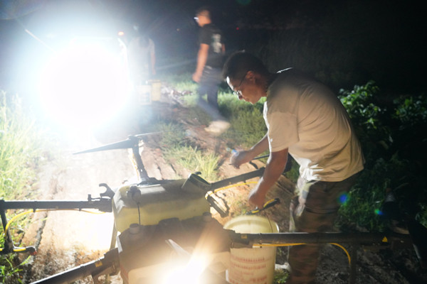 7月31日晚上22:20分,在邱上郢生產(chǎn)區(qū)四隊田頭,隊長楊明正和魏佳、金仁超一起在田間進行水稻病蟲防治,他們3人全部是在疫情防控值守工作完成后,利用休息時間進行田間管理,其中一人是接防控點零點的班,雖然值守防控點已經(jīng)很辛苦,晚上進行病蟲防治田間蚊蟲叮咬的厲害,但他們沒有一句沒有怨言,隊長楊明說,晚上進行病蟲防治不耽誤白天的工作,關鍵時刻,他們工作不分晝夜,勇于奉獻,愛崗敬業(yè),在為三河疫情防控工作奉獻自我的同時,認真做好本職工作,他們值得我們學習。