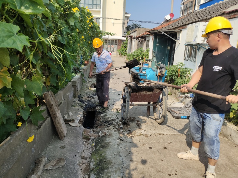 隨著時間的推移,溫度不斷升高,要疏通的下水道長近50米,但工人們沒有后退,他們趕時間、搶進度,帶著悶熱的安全帽,即使汗流浹背也一刻都不懈怠。施工過程中,工人們先是用力地翹起蓋槽板,然后從堵塞的下水道里挖上來很多散發出惡臭、黑黢黢的淤泥,再用小車一車一車的將堵塞物運走。他們不嫌累、不嫌臟,不方便施工時便將腿跪在地上,用工具將下水道清理得干干凈凈。即使在作業時,本著對蓋槽板等原材料保護優先的原則,只能用工具將淤泥掏出來,一定程度上加大了施工的難度,增加了施工的時間,但工人們用飽滿的精神狀態和辛勤的汗水,切實為居民辦了一件實事。