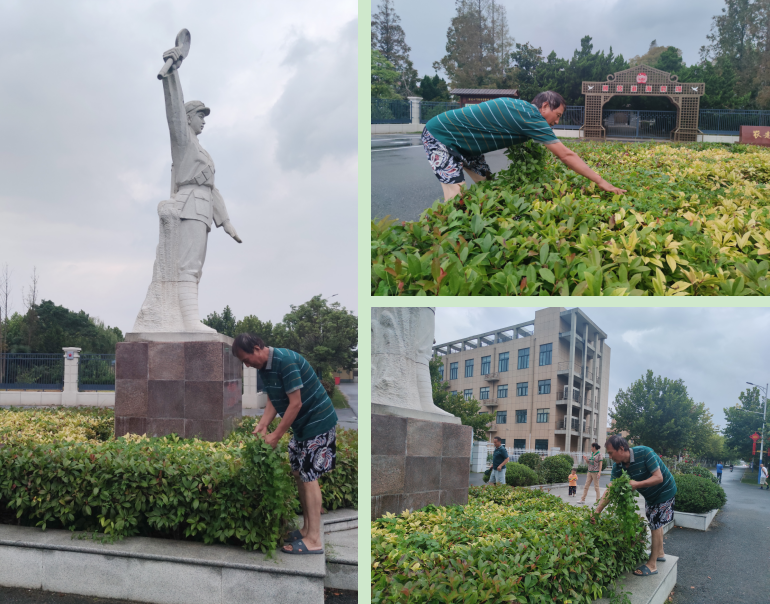 據了解,李明香是農場的墾二代,今年65歲,在淮海土生土長并接受到軍墾傳統文化教育的他,與大多數淮海人那樣,骨子里有種勤奮的勁頭和對美麗農場的熱愛。也正是有許許多多李明香這樣的淮海人,農場的今天才會越來越美好,職工居民的生活也會越來越和諧,越來越興旺。圖為李明香在紀念碑綠化池中清理藤蔓雜草。