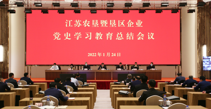 1月24日,江蘇農(nóng)墾暨墾區(qū)企業(yè)黨史學習教育總結會議在寧召開。會議深入學習貫徹習近平總書記重要論述重要指示和中央、全省、省國資委暨省屬企業(yè)黨史學習教育總結會議精神,全面總結墾區(qū)黨史學習教育取得的成效經(jīng)驗,對鞏固拓展黨史學習教育成果進行部署安排。集團公司黨委書記、董事長魏紅軍出席會議并講話,他強調(diào),要堅決貫徹落實習近平總書記關于黨史學習教育的重要指示和中央、省委決策部署,深入學習貫徹黨的十九屆六中全會、省第十四次黨代會精神,不斷鞏固拓展黨史學習教育成果,奮力譜寫“強富美高”新江蘇現(xiàn)代化建設的農(nóng)墾篇章,以奮進新征程、建功新時代的優(yōu)異成績迎接黨的二十大勝利召開。集團公司黨委副書記、總經(jīng)理胡兆輝主持會議,黨委副書記姚準明傳達中央、全省、省國資委暨省屬企業(yè)黨史學習教育總結會議精神,黨委委員、副總經(jīng)理姜建友,黨委委員、總會計師劉克英,黨委委員、紀委書記李旭東,黨委委員、副總經(jīng)理王立新出席會議。