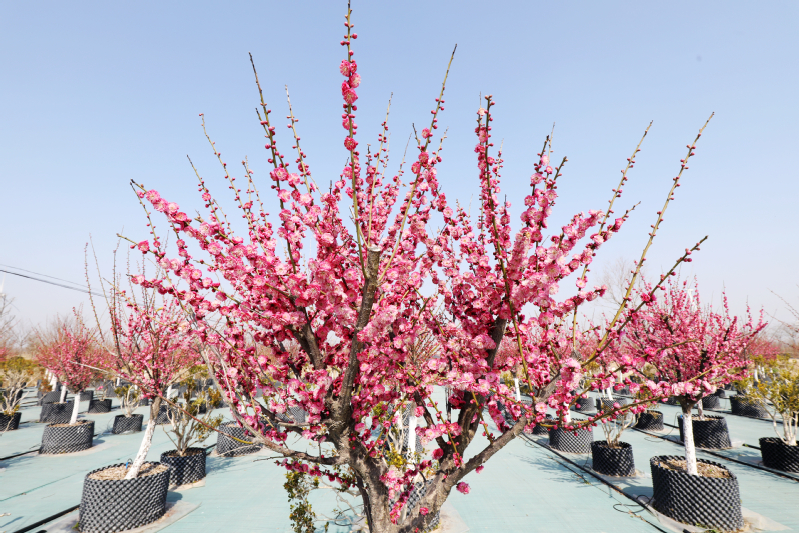 “這片紅梅共有300多棵,其樹形、樹冠和花色,都是我們精心挑選和培育的,目前的市場價值也逐漸凸顯。”新洋林業公司負責人高翔介紹。