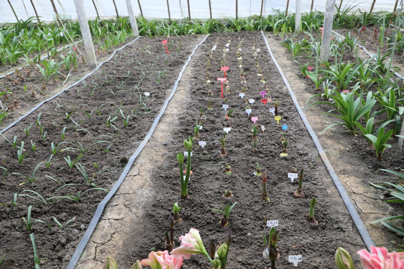 在十年漫長的種植摸索過程中,幾乎每天都有新老客戸來信或上門向周恒銀學習、咨詢朱頂紅栽培技術,周恒銀始終毫無保留,知無不言言無不盡地進行講解和指導,做到人無我有,人有我優,人優我棄的種植管理模式。荷蘭種球公司的老外專家和北京瑞承、綠爾種球公司的負責人到周恒銀的朱頂紅基地考察后,無比驚嘆并充分肯定他培育出種苗;青年花農寧昌近年一直種植蓬萊松,行情不好、產品滯銷,在接觸周恒銀的指導后,不但掌握了種植技術,成功種植一個大棚的朱頂紅,而且能夠用電商平臺直播賣貨,成為了朱頂紅創新工作室一員;極兔快遞青年李超,看到周恒銀每天到他快遞分部發貨,了解到朱頂紅是網上電商銷售,網絡空間大、利潤高,毅然放棄快遞業務,跟周恒銀學習種植、直播電商,做起了花農電商產業,目前李超的兩個大棚朱頂紅也陸續上市,并且利用電商自產自銷。