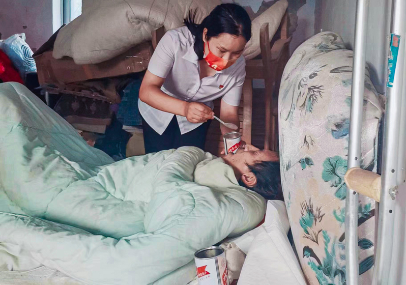 云臺(tái)農(nóng)場張圩居委會(huì)所轄小糧地居民點(diǎn),地理位置偏僻,是個(gè)只有5 戶人家的待撤并村莊。2022年8月9日,在“四個(gè)百”活動(dòng)日常走訪中,當(dāng)居委會(huì)走訪到小糧地居民點(diǎn)曹子牛家時(shí),發(fā)現(xiàn)昏暗的房間內(nèi)陣陣異味撲鼻而來。獨(dú)居在此的居民曹子牛,因起夜從床上不慎跌落在地,造成意識(shí)模糊講不出話來,大小便失禁,生活無法自理,成了一名“失能人”。作為居委會(huì)的幫扶對(duì)象,曹子牛一直是村子里讓人頭疼的“老大難”。年輕時(shí)候的曹子牛常年游手好閑、酗酒成性,喝多了就家暴妻子孩子,2010年、2018年,他先后兩次因?yàn)榫岂{摔傷,導(dǎo)致左腿粉碎性骨折、腰部受傷,妻子頭部嚴(yán)重受傷。厄運(yùn)接踵而至,讓妻兒無法忍耐,先后離開了家。由于他平日的言行,加之親屬能力有限無人愿意照料他,這給張圩居委會(huì)黨支部書記徐洪敏出了一道大難題,這燙手的山芋到手了就沒有丟掉的道理,徐書記沒有絲毫的猶豫,她立即成立了以她和居委會(huì)黨支部委員段萬江同志、小糧地轄區(qū)網(wǎng)格單元長顧林國同志為成員的專項(xiàng)幫扶小組,第一時(shí)間為曹子牛送去了米、面、水、雞蛋、八寶粥、隔尿墊、尿不濕等食物和生活必需品,并看守照料曹子牛。照料這樣的失能人難度可想而知,而這位90后女書記愿意帶著大家干這種又臟又累伺候人的活,更是難以想象!面對(duì)滿屋的異味,她連眉也沒皺一下,不嫌臟、不怕累,帶領(lǐng)幫扶小組上前給曹子牛喂水、喂藥、喂飯,處理他的大小便,換洗床鋪,打掃房間,真正將群眾視為自己的親人去照料,去愛護(hù)。照料曹子牛生活的同時(shí),她也沒有停止為曹子牛爭取援助的腳步。她積極聯(lián)合轄區(qū)派出所和有關(guān)部門,想方設(shè)法聯(lián)系他的親屬,苦口婆心的勸說,幫助協(xié)調(diào)矛盾糾紛,積極申請(qǐng)民政救助,聯(lián)系海州區(qū)殘聯(lián)上門幫助他評(píng)殘,為曹子牛申請(qǐng)重殘補(bǔ)助,讓曹子牛真真切切地感受到黨的關(guān)懷。