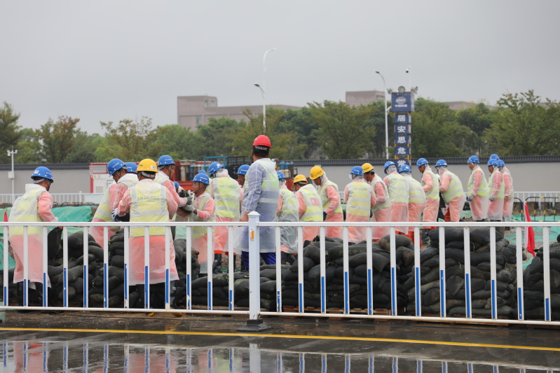 為進一步樹牢安全發展理念、壓實安全生產責任、防范化解重大風險、提升干部職工應急處置能力,8月29日,江心沙攜手中鐵十四局海太長江隧道工程項目部開展防臺防汛綜合應急演練。圖為筑堤防洪、醫療救助、緊急撤離等演練場景。
