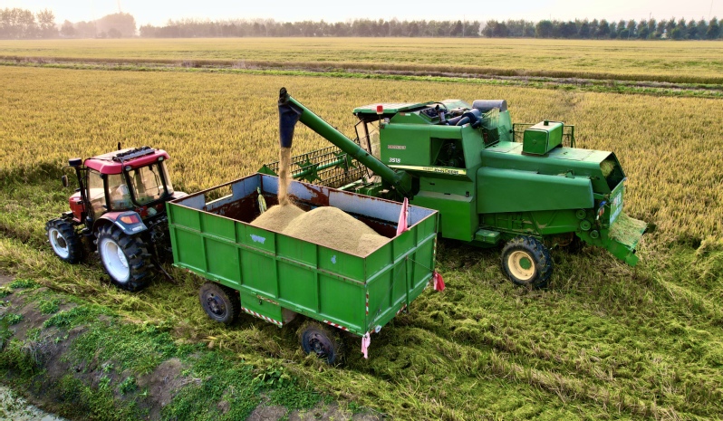 收割、脫粒、粉碎秸稈一氣呵成,色澤金黃、顆粒飽滿的水稻被裝入運(yùn)糧車中送到曬場。今年“三秋”工作,復(fù)興圩分公司狠抓機(jī)械收割質(zhì)量,牢固樹立“減損就是增收”的理念,各大隊(duì)加強(qiáng)收割作業(yè)質(zhì)量檢查力度,強(qiáng)調(diào)質(zhì)量第一,確保秋糧“豐收在望”變?yōu)椤柏S收到手”。
