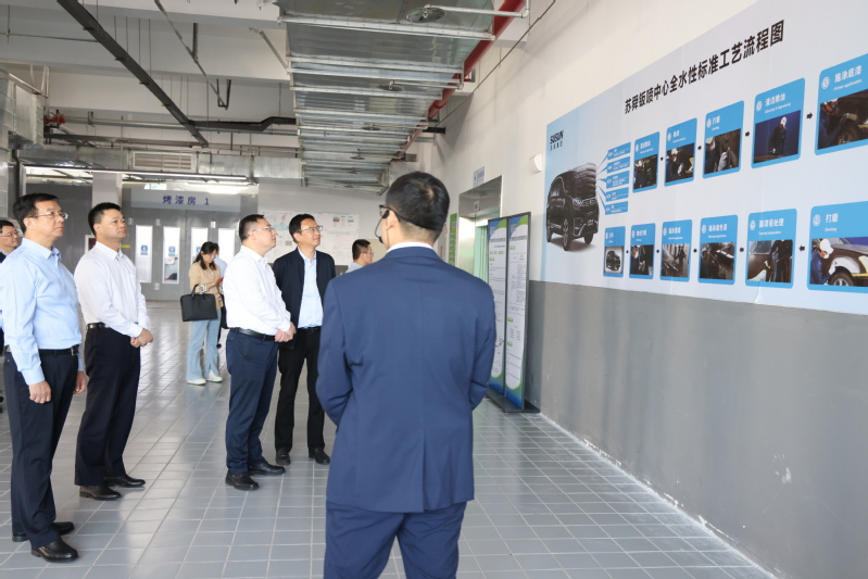 在蘇舜公司鈑噴中心“綠島”項目現(xiàn)場,督察組詳細了解了全水性標準工藝噴涂流程、傳統(tǒng)溶劑性油性漆與水性漆環(huán)保的參數(shù)對比。在中涂預(yù)噴綜合房、水性漆環(huán)保型烤漆房、全水性油漆調(diào)漆間、VOCs凈化治理裝置及全封閉漆后處理工位等點位,督察組聽取了設(shè)備運行情況介紹,詢問了廢棄材料回收處置情況。督察組還聽取了蘇舜公司生態(tài)環(huán)保工作和鈑噴中心“綠島”項目建設(shè)情況的匯報,詢問了園區(qū)雨水回收綜合利用系統(tǒng)使用情況。