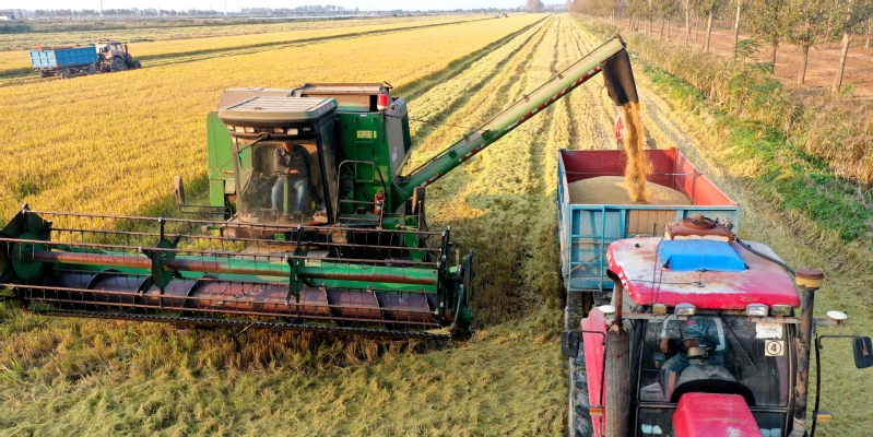 10月24日,江蘇農墾黃海農場11萬畝水稻迎來豐收。現場收割機的隆隆轟鳴,糧食運輸車輛來回穿梭,確保水稻應收盡收、機收減損、顆粒歸倉。