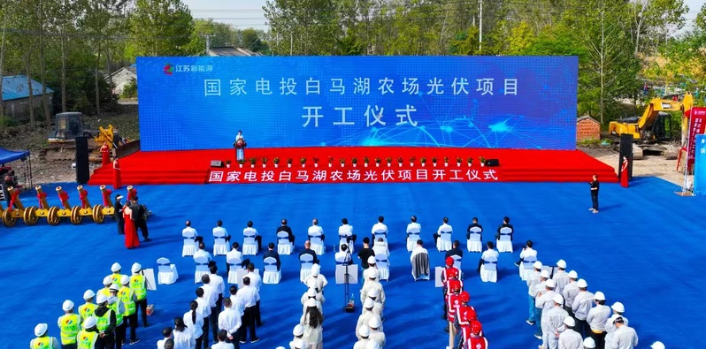 “5、4、3、2、1,開(kāi)啟……”10月28日上午,隨著陣陣禮炮聲,總投資4億元的國(guó)家電投白馬湖農(nóng)場(chǎng)光伏項(xiàng)目正式開(kāi)工。國(guó)家電投江蘇電力有限公司黨委委員、副總經(jīng)理鄧森,集團(tuán)公司黨委委員、副總經(jīng)理王立新,集團(tuán)公司總經(jīng)理助理錢伯彬,淮安區(qū)委常委、常務(wù)副區(qū)長(zhǎng)印祺出席開(kāi)工儀式。