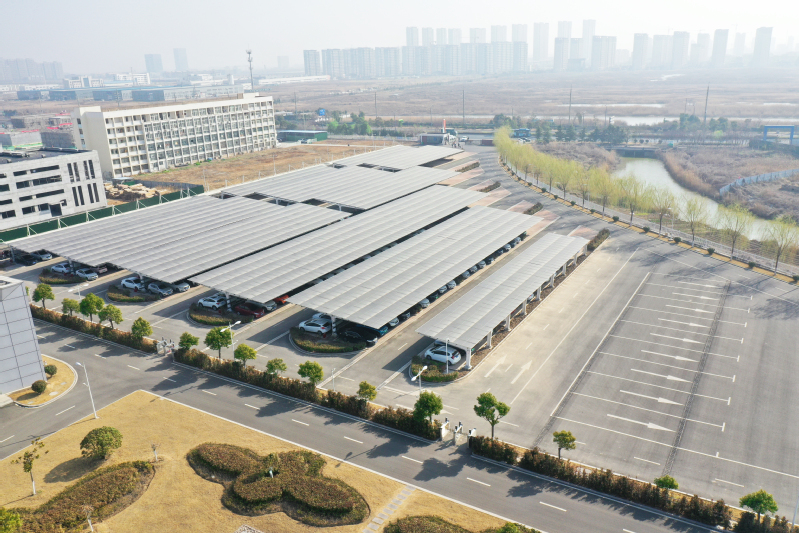 形式多樣,做好資源利用工作。在項目開發(fā)過程中,清能公司打破工商業(yè)分布式光伏電站只能建在屋頂上的傳統(tǒng)思維,大膽拓展應用場景。根據(jù)企業(yè)需求和資源條件,充分利用合作伙伴廠區(qū)閑置場地和停車場建設光伏電站。2021年,利用蘇墾麥芽一塊閑置多年的場地建成0.9兆瓦地面分布式電站。2022年,利用連云港潤眾公司兩處大型停車場建成1.62兆瓦車棚光伏電站,每年不但為潤眾公司提供180萬度清潔電能,而且還能停放433輛小汽車。潤眾公司工程部汪銳經(jīng)理告訴筆者,車棚光伏電站建成以后,他們公司用電總量當中的清潔電力占比得到了較大提高,為“綠色工廠”的認定加分不少,同時還消除了員工私家車露天停放日曬雨淋的困擾,員工也得到了實惠并交口稱贊。
