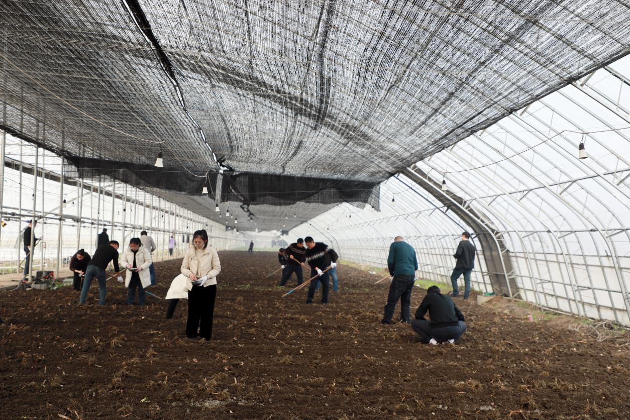 大年初二,正是廣大群眾休閑玩樂、享受假日的時間。然而,走進崗埠富民農業科技園,卻是一片繁忙景象,來自全場各單位的30多名干部職工緊張忙碌著。