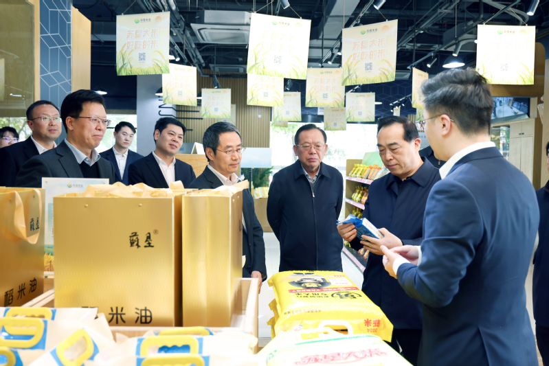 王榮平一行來(lái)到蘇墾尚膳門店,了解江蘇農(nóng)墾糧油產(chǎn)品和精深加工食品,調(diào)研科技創(chuàng)新、智慧農(nóng)業(yè)、農(nóng)產(chǎn)品全程質(zhì)量追溯等工作情況;在江蘇農(nóng)墾展示廳,詳細(xì)了解農(nóng)墾創(chuàng)業(yè)及改革發(fā)展歷程。