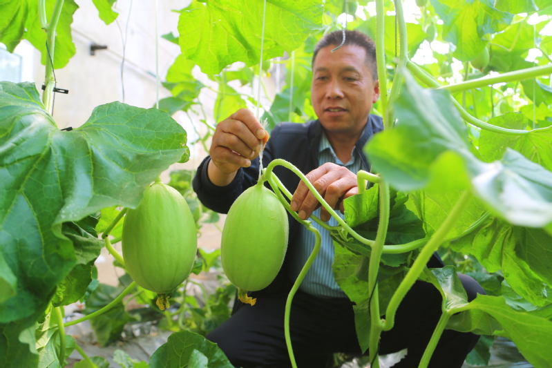 在崗埠農場高效農業示范園18號大棚內,工作人員正忙著為“東方蜜”甜瓜進行果實固定及打杈吊蔓作業。他們穿梭在瓜藤間,動作嫻熟,用辛勤汗水澆灌豐收希望。