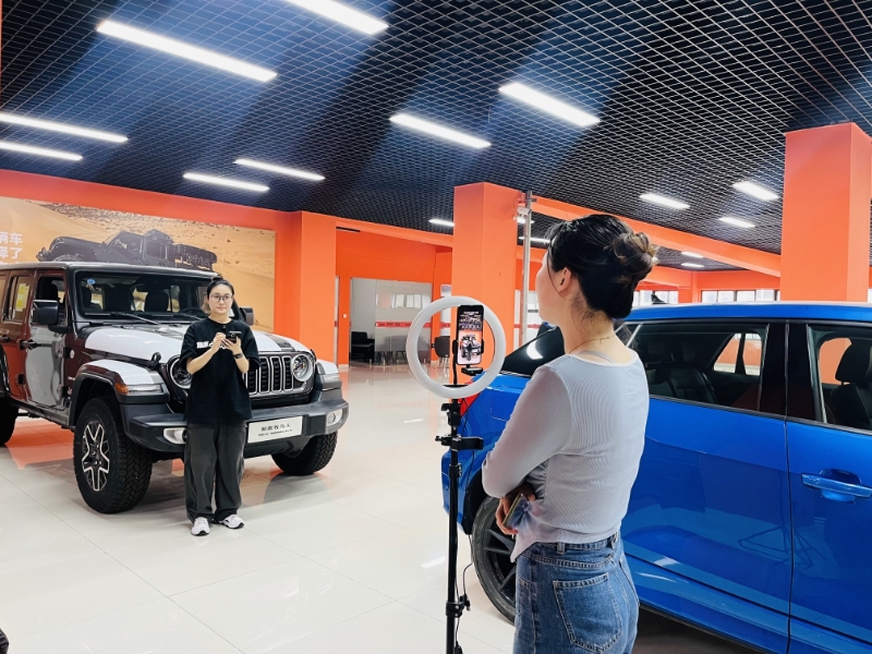 “牧馬人原廠配備全地形255 75/R18輪胎,中控觸摸屏由8寸升級到12寸,涉水深度達760mm。”蘇舜錦尚公司(Jeep4S店)主播陳佳琪正通過直播間為客戶360°全方位展示和講解車輛配置,耐心解答客戶問題,1名客戶成功預約進店。