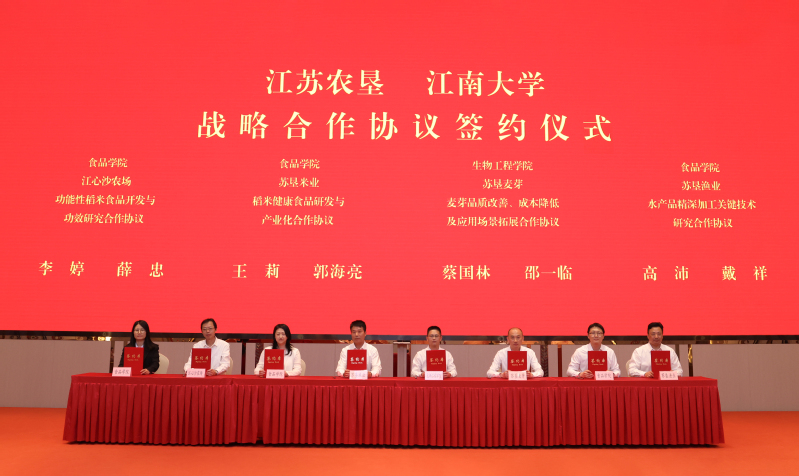 集團公司總經濟師、相關部門負責人,江心沙農場、蘇墾農發、蘇墾漁業等單位負責人,江南大學相關學院及部門負責人、專家教授等參加簽約儀式。