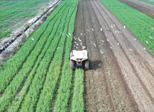 小滿時節(jié),位于江蘇省淮安市金湖縣的江蘇農(nóng)墾寶應(yīng)湖農(nóng)場歐盟國標(biāo)雙認(rèn)證的有機(jī)稻種植基地,一臺無人智能拖拉機(jī)正在進(jìn)行旋耕作業(yè)。這臺無人智能拖拉機(jī)由丘沃智能科技自主研發(fā),實現(xiàn)效率與油耗的聯(lián)合優(yōu)化控制。通過AI作業(yè)規(guī)劃算法,農(nóng)機(jī)和農(nóng)具可自主協(xié)同形成覆蓋作業(yè)方案,實現(xiàn)24小時無人化精準(zhǔn)作業(yè),單日耕作面積達(dá)700畝,較傳統(tǒng)模式效率提升3倍?! ×旱卤z(來源:大國三農(nóng))