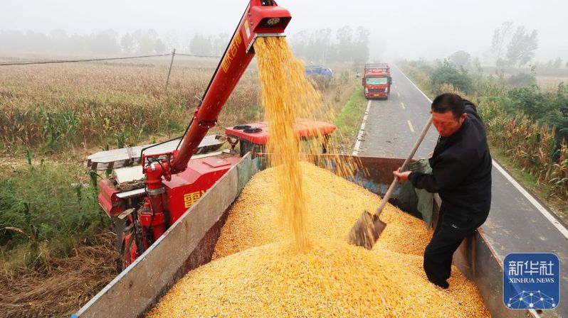 10月11日,江蘇省連云港市海州區崗埠農場工作人員在裝運玉米。