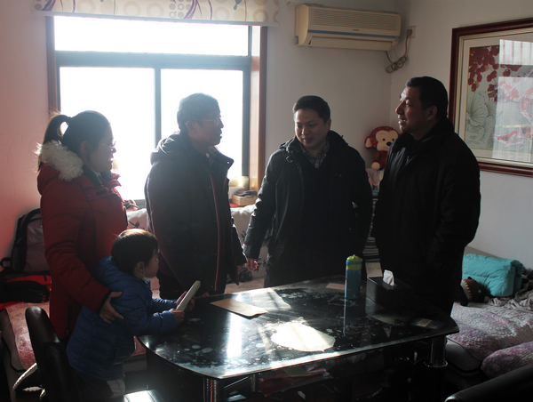2月9日,集團(tuán)公司黨委書(shū)記、董事長(zhǎng)魏紅軍,工會(huì)主席佟曉廷一行到江心沙農(nóng)場(chǎng)看望慰問(wèn)困難職工,向他們送上集團(tuán)公司黨委的親切關(guān)懷和新年問(wèn)候。  魏書(shū)記一行首先來(lái)到海沙居委會(huì)困難職工蔡新娣家中