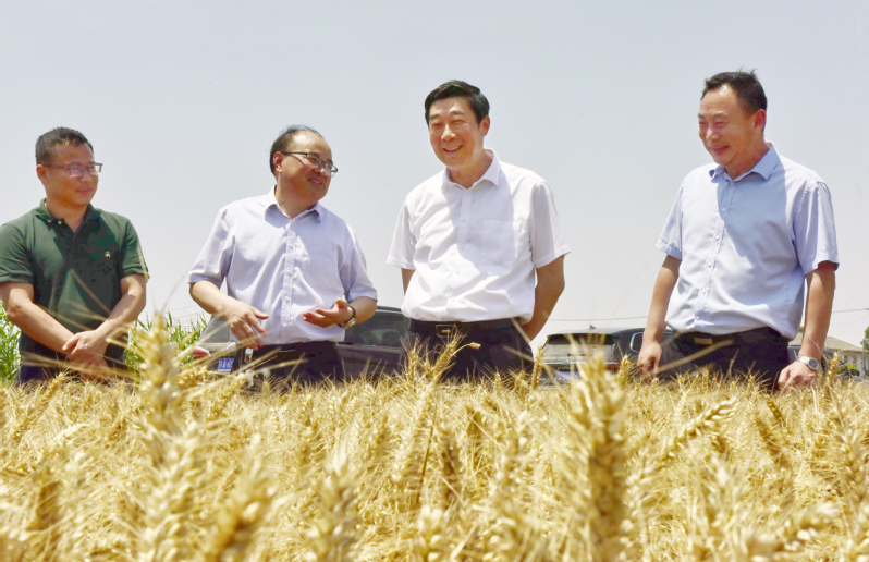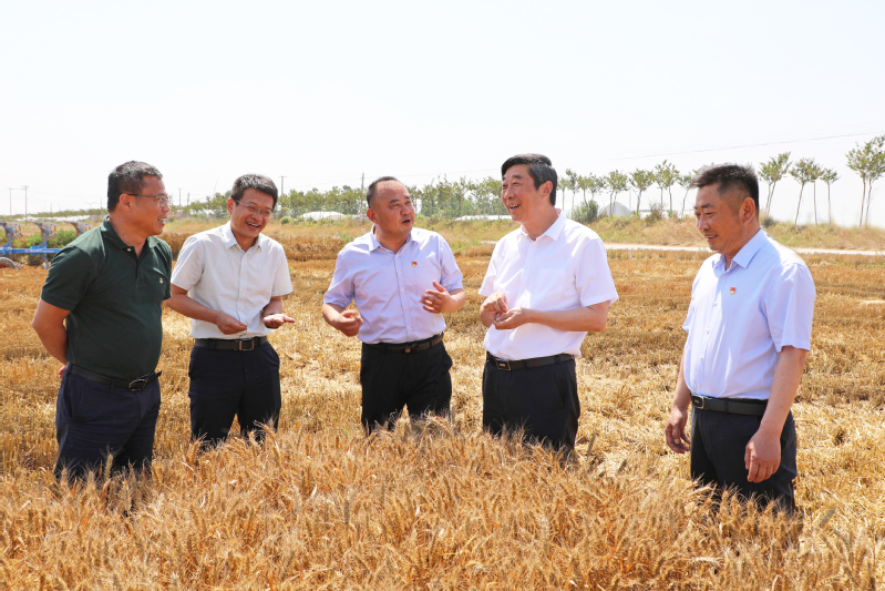 6月12日下午,集團公司黨委書記、董事長魏紅軍到東辛調研。他強調,要深入扎實開展學習貫徹習近平新時代中國特色社會主義思想主題教育,把“學思想、強黨性、重實踐、建新功”總要求貫穿始終,堅持問題導向,深化調查研究,持續提高發現問題、研究問題、解決問題的能力,以實實在在的工作業績檢驗主題教育成果。魏紅軍針對東辛漁光互補項目前期規劃中可能存在的問題,前往灌云洋橋漁光一體光伏發電項目現場考察,詳細了解相關經驗做法。隨后在東辛小麥制種大縣項目現場聽取“三夏”工作情況介紹,并對東辛“三夏”工作取得階段性勝利表示肯定。魏紅軍強調,要堅決抓好糧食安全這件頭等大事,決不能有任何松勁歇腳的思想,牢牢把握主動權,確?!叭摹比〉萌珓佟R罅嵤┘瘓F公司強核戰略和種業振興行動,將小麥制種大縣項目打造成東辛的一張名片。邁上新征程,東辛要聚焦影響高質量發展突出問題,進一步樹立“謀大事、干大事、成大事”的鮮明導向,抓好產業發展,強化內部管理,提升經營效益,不斷增強核心競爭力,在事關全局、事關發展、事關長遠的研究謀劃、難題破解上取得新進展新成效,奮力在墾區高質量發展和現代化建設中繼續當好排頭兵,為打造現代農業航母“江蘇