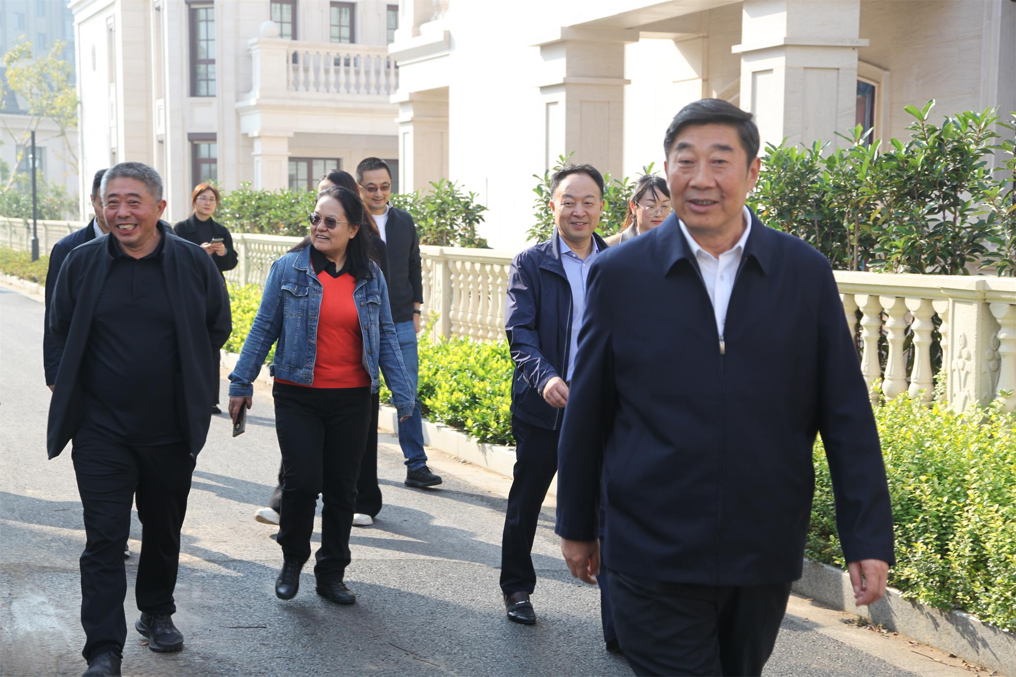 10月30日下午,集團公司黨委副書記、總經理胡兆輝一行到云臺農場公司考察調研,集團公司農業發展部負責人、蘇墾農發股份公司總裁,云臺領導班子成員陪同。胡兆輝一行先后在大汪水稻收割現場、小島曬場烘干線、張圩玉米大豆茬口小麥出苗田塊、省園博園項目、高效農業生產區靈芝種植大棚等地進行實地走訪調研。胡兆輝對云臺“三秋”的工作進展情況表示充分肯定。胡兆輝指出,全場上下要深入學習宣傳貫徹黨的二十大精神,進一步提振精神、鼓足干勁,踔厲奮發、勇毅前行,為全面推進鄉村振興提供堅實支撐。胡兆輝強調,要搶抓晴好天氣,做細做實“三秋”生產準備工作,確保顆粒歸倉,抓牢豐收成果,要把實施好綠色高質高效行動作為“三秋”工作的重要抓手,不誤農時抓好秋種各項工作,全力奪取全年糧食豐產豐收,為明年夏熟夯實生產基礎。省第十二屆園博會是江蘇園林綠化行業層次最高、規模最大、影響最廣的大會。當前,省園博會籌建工作已進入沖刺階段。胡兆輝要求,要進一步增強緊迫感、責任感,加強統籌協調,周密做好籌備工作,科學組織施工,加快推進園區江蘇農墾現代農業科技園項目建設,做好油菜花播種工作,提升景觀質量,充分展示江蘇農墾現代農業水平與良好國企形象