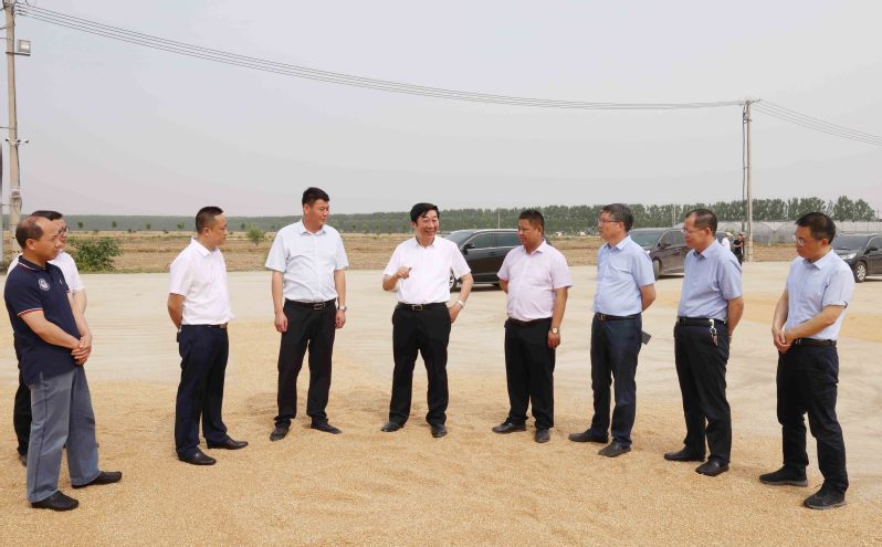 6月10日上午,集團公司黨委副書記、總經(jīng)理、蘇墾農(nóng)發(fā)董事長胡兆輝到崗埠調(diào)研指導(dǎo)工作。集團公司辦公室、蘇墾農(nóng)發(fā)公司有關(guān)領(lǐng)導(dǎo),崗埠農(nóng)場公司黨委班子成員等陪同調(diào)研。胡兆輝一行先后來到崗埠農(nóng)場環(huán)境整治項目徐圩大溝、振興路景觀河、張贛河水環(huán)境治理項目,實地察看了高橋生產(chǎn)區(qū)姜莊隊小麥?zhǔn)崭瞵F(xiàn)場、綜合服務(wù)中心現(xiàn)場及崗埠富民科技園,現(xiàn)場與職工親切交談,聽取農(nóng)場公司情況匯報,了解了“三夏”工作整體推進、崗埠環(huán)境整治以及科技園發(fā)展等情況。胡兆輝要求,崗埠廣大黨員干部要加強黨史學(xué)習(xí)教育,做到學(xué)史力行,知行合一,要有 “爭當(dāng)表率、爭做示范、走在前列”的使命擔(dān)當(dāng),認(rèn)真做好“三夏”協(xié)調(diào)推進工作,確保“三夏”攻堅戰(zhàn)役全勝。他指出,“三夏”工作是當(dāng)前重點工作,崗埠要樹立全場“一盤棋”的大局意識,一切服從“三夏”、一切服務(wù)“三夏”,要科學(xué)合理安排,加強田間技術(shù)服務(wù)指導(dǎo)和農(nóng)資、農(nóng)機調(diào)度,統(tǒng)籌做好夏收、夏管、夏種工作,確保夏糧豐產(chǎn)豐收、顆粒歸倉。他強調(diào),崗埠新的黨委班子成員較為年輕,有活力、有擔(dān)當(dāng),要以黨史學(xué)習(xí)教育為契機,加強團結(jié),相互支持,齊心協(xié)力謀劃好崗埠發(fā)展,認(rèn)真開展好“我為職工居民辦實事”實踐活動,進一步加快產(chǎn)業(yè)發(fā)展