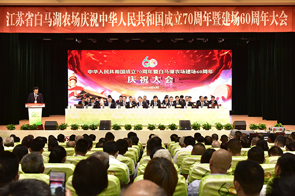 9月23日,在節日般的喜慶氛圍中,白馬湖農場有限公司干部職工代表和特邀嘉賓共450人歡聚一堂召開慶祝大會,共同慶祝中華人民共和國成立70周年暨白