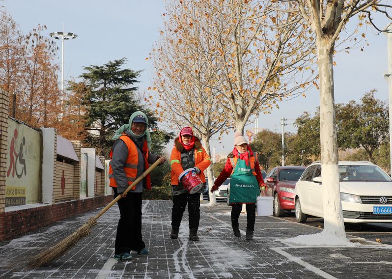 12月18日晚,連云港市迎來了寒冬首場降雪,氣溫更是下降至零下8攝氏度,初雪的到來總是一件令人欣喜的事情,馬路上的行人紛紛駐足拿出手機記錄下飄落的雪花,然而當大家沉浸在雪景時,東辛環衛所工作人員“聞雪而動”,組建了一支“撒鹽融雪突擊隊”,全力保障居民群眾出行安全。大雪未至他們已到崗,大雪停下他們卻仍未停歇......晚上十點,風在吼,雪在下,刺骨的寒風吹在臉上如刀割般疼痛,環衛所清運班班長劉景洋正帶領環衛工人頂著寒風奮戰在撒鹽融雪第一線。風雪交加的夜晚,室外溫度已降至零下8攝氏度,環衛工作人員來來回回搬運了數千斤重的鹽袋,大家不畏嚴寒、相互配合、齊心協力,一派熱火朝天景象。經過一夜的奮戰,次日清晨,東辛城鎮內主干道的積雪已全部清除,道路恢復了以往的干凈整潔,居民出行生活基本恢復正常。除了主干道,環衛所還組織人員對綠化帶、公園、超市、橋梁、菜市場等重點場所開展人工撒鹽清掃,做到不留死角、不漏邊角,力爭將每一塊存在安全隱患的積雪結冰路面盡可能地清理干凈,確保農場居民群眾出行安全。