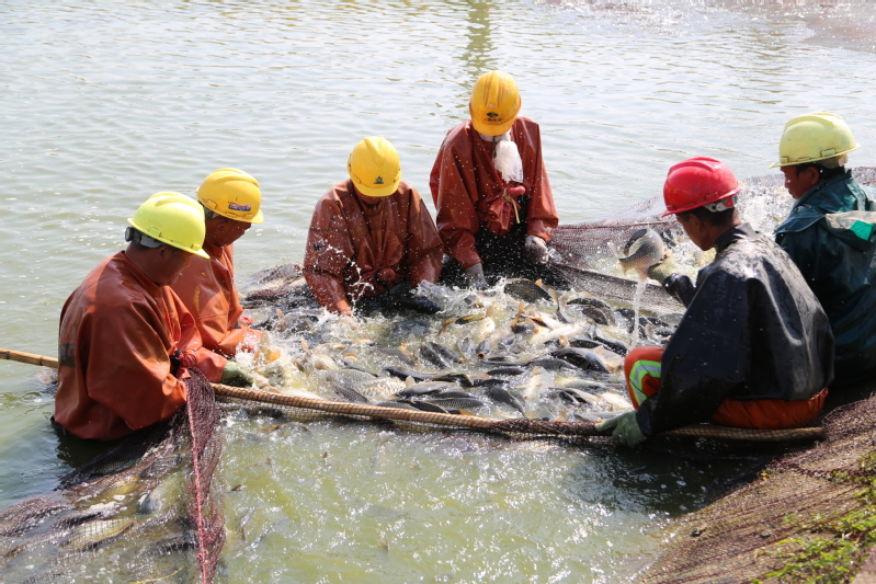 又到金秋收獲時,崗埠大地上處處是豐收的景象。10月9日,走進崗埠農(nóng)場公司南漁場,水產(chǎn)工人們正在相互配合拉網(wǎng)起魚,魚網(wǎng)里的一條條鯉魚碩大肥美、跳躍歡騰,揚起了陣陣水花,現(xiàn)場熱鬧極了。“這一網(wǎng)得有一萬多斤吧!”“你看那條大鯉魚,恐怕要有5、6斤呀~”附近的養(yǎng)殖戶聞訊趕來,一同觀看捕魚場景,并探討著這個“鯉魚大盲盒”,望著一條比一條大的鯉魚,發(fā)出了驚呼。“10月份以來,水產(chǎn)市場行情越來越好,消費者對鯉魚的需求量逐漸增加。最近一周時間,水產(chǎn)公司南北兩個漁場已經(jīng)銷售鯉魚十幾萬斤,分別銷往山東、四川、貴州等地方。”水產(chǎn)公司負責人單懷亞介紹。連日來,水產(chǎn)公司放棄節(jié)假日休息時間,搶抓市場行情,采取訂單式銷售方式,積極聯(lián)系水產(chǎn)銷路。“我們根據(jù)客戶需求,都是提前一天將魚拉到網(wǎng)中,第二天早上5點多,我們就到現(xiàn)場組織捕撈銷售,一忙就是一天。”水產(chǎn)公司工作人員說。據(jù)悉,水產(chǎn)公司當天銷售鯉魚近3萬斤,全部發(fā)往貴州。“下一步,崗埠水產(chǎn)公司將以集團公司第二次黨代會精神為指引,大力發(fā)展特色水產(chǎn)養(yǎng)殖,探索‘黨支部+企業(yè)+農(nóng)戶’模式,發(fā)揮橋梁紐帶作用,在壯大集體經(jīng)濟的同時,帶領養(yǎng)殖戶致富,為崗埠發(fā)展貢獻水產(chǎn)力量。”單懷亞表