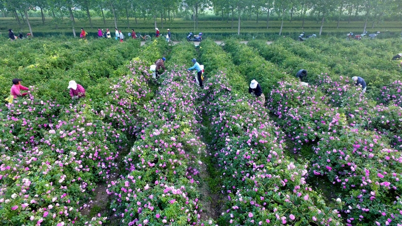 五一小長假,新曹農場有限公司“玫瑰香村”大馬士革玫瑰絢麗綻放、花開成海、香飄萬里、采摘繁忙、游人不絕、美輪美奐,宛似“人間四月芬菲盡、玫瑰花香陶人醉”。清晨,一群群“趕海人”從四面八方匯聚“花海”,有序排開,進入各自崗位。約600名采花娘娘,舞動雙手,在花香的陶醉下,靈巧地采摘著鮮花,一個上午快的采花能手可以采摘一百來斤,掙到120元左右工資,普遍的都在80-90斤,近90-100元的收入。一個花季下來,可以帶動農場職工和周邊農民增收50多萬元。花季是最美的,也是最苦的。新曹機關干部放棄五一休假,抽調骨干支援采花,幫助稱重、登記開票、包裝上車,忙的不亦樂乎,一幫剛來場的大學生在一線得到鍛煉成長。花開成海,香味撲鼻。一群特殊的游客免費在這里賞花游玩,享受大自然的恩賜,在花海中聆聽花開的聲音,輕嗅花香的甜美,觀賞朝露晶瑩的鮮花,放松身心、愉悅心情,如癡如醉。五月來新曹真的好玩呢!