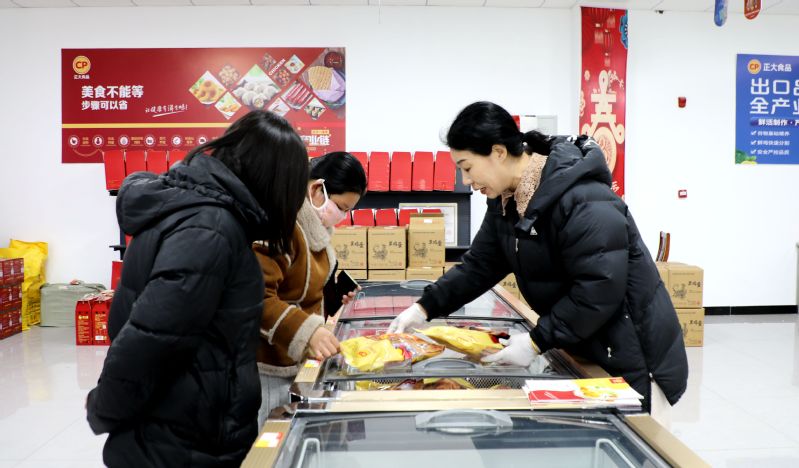東辛農場東米門店創新推出“冷凍+鮮品”雙引擎模式,在做好冷凍速食產品銷售的基礎上,通過引入鮮豬肉、雞蛋、糧油、大米等高頻次消費品,不斷提升營銷能力和水平。圖為顧客正在選購東米產品。