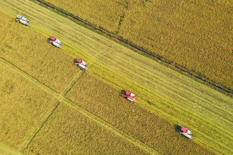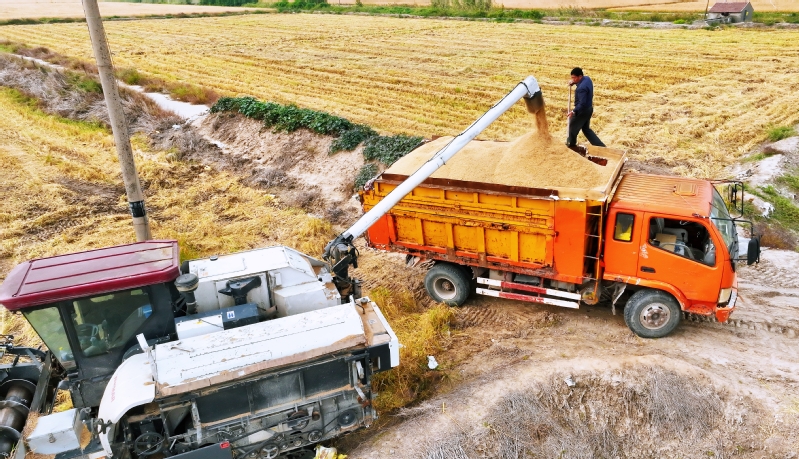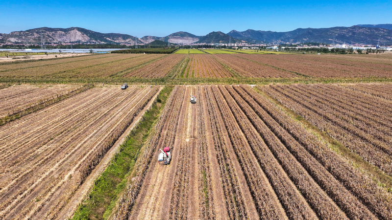 時下,正式秋收好時節(jié),在蘇墾農(nóng)發(fā)云臺分公司廣袤的田野上,豆莢搖曳如鈴,玉米金黃飽滿,伴隨著收割機的轟鳴聲,蘇墾農(nóng)發(fā)云臺分公司1.1萬畝玉米大豆復合種植“喜開鐮”,工作人員搶抓晴好天氣,及時收割、晾曬,開始了緊張而有序的收割工作。蘇墾農(nóng)發(fā)云臺分公司緊盯全年糧食生產(chǎn)目標任務,按照江蘇省農(nóng)墾集團的“五統(tǒng)一”模式為標準,通過“4+4”復合種植模式,充分發(fā)揮高位作物玉米的邊行優(yōu)勢,擴大低位作物大豆受光空間,實現(xiàn)作物協(xié)同共生、一季雙收。為了抓好今年“三秋”工作,蘇墾農(nóng)發(fā)云臺分公司制定了各大隊組織分工、產(chǎn)量目標、成本管控、生產(chǎn)進度、作業(yè)質(zhì)量、田間苗情、病蟲草害控制、場頭管理與糧食入庫銷售、質(zhì)控平臺運行、農(nóng)業(yè)面源污染治理、藥肥雙減增效、安全生產(chǎn)等12項“三秋”考核內(nèi)容,并多次開展技術培訓,為抓好“三秋”工作提供組織保證、考核目標和技術標準。“看樣子,今年又是一個豐收年。”一大隊隊長王飛抓起一把玉米說。“開始作業(yè)前,我們對所有農(nóng)機具進行了安全自查,確保收割機狀態(tài)良好,在玉米收割過程中我們嚴格按照玉米收獲作業(yè)質(zhì)量管理規(guī)程,真正實現(xiàn)玉米籽粒損失率要小于等于百分之二,籽粒破損率要小于等于百分之五的目標任務。”