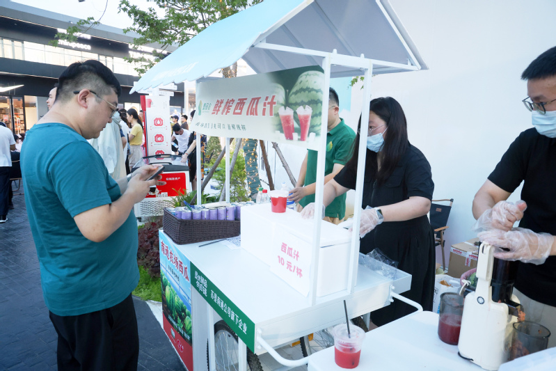 6月29日,“蘇超”聯賽焦點戰——南通隊對陣宿遷隊的較量火熱打響,蘇錫通園區楓葉小鎮奧特萊斯“第二現場”化身一片歡樂海洋。場內,巨幕大屏實時捕捉著賽場每一寸風云變幻,將攻防轉換的緊張刺激清晰投射;場外,攤車次第鋪開,循著光影軌跡駛入童話的美食王國。南通公司順勢借“蘇超”賽事的火熱東風,特別推出農場直供的鮮榨西瓜汁——炎炎夏日里,這份冰爽與甘甜恰似一劑及時的“救贖”。捧起西瓜汁猛灌一口,帶著沙沙綿密口感的清甜瞬間漫過舌尖,將積攢整日的燥熱滌蕩一空。賽事開始后,現場氣氛愈發沸騰,數千人流交織著歡聲與笑語,鮮榨西瓜汁也順勢迎來了銷售熱潮。當晚9時,所有鮮榨西瓜汁便銷售一空。杯盞間的余味里,那一份清爽甘洌陪伴著意猶未盡的旅客,將賽事熱情延續到深夜。