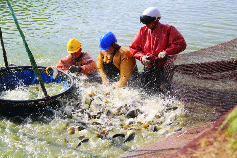 走進(jìn)崗埠農(nóng)場(chǎng)北漁場(chǎng),大型吊車(chē)配合捕魚(yú)工人們正在進(jìn)行拉網(wǎng)作業(yè),收獲的鯉魚(yú)經(jīng)過(guò)分揀銷(xiāo)往湖北等地。連日來(lái),水產(chǎn)市場(chǎng)行情走俏,崗埠農(nóng)場(chǎng)加緊捕撈各類水產(chǎn)品,切實(shí)滿足市場(chǎng)供應(yīng)。據(jù)悉,當(dāng)日共捕撈鯉魚(yú)3萬(wàn)余斤,銷(xiāo)售額近20萬(wàn)元。